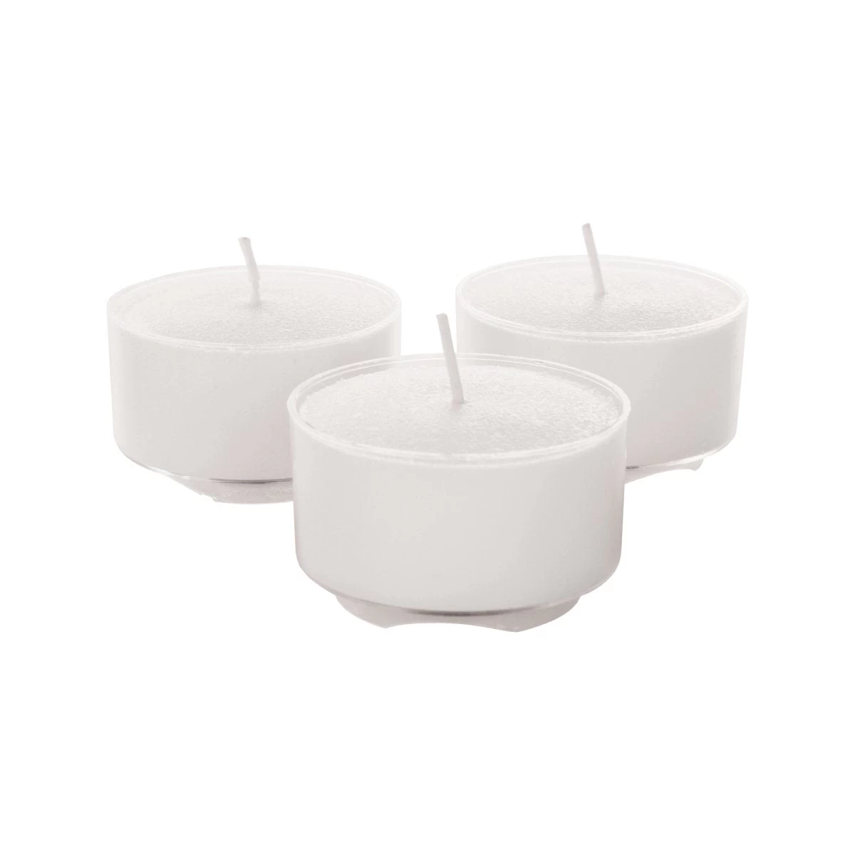 Altar lights in clear polycarbonate cups with special wick to give a larger flame.