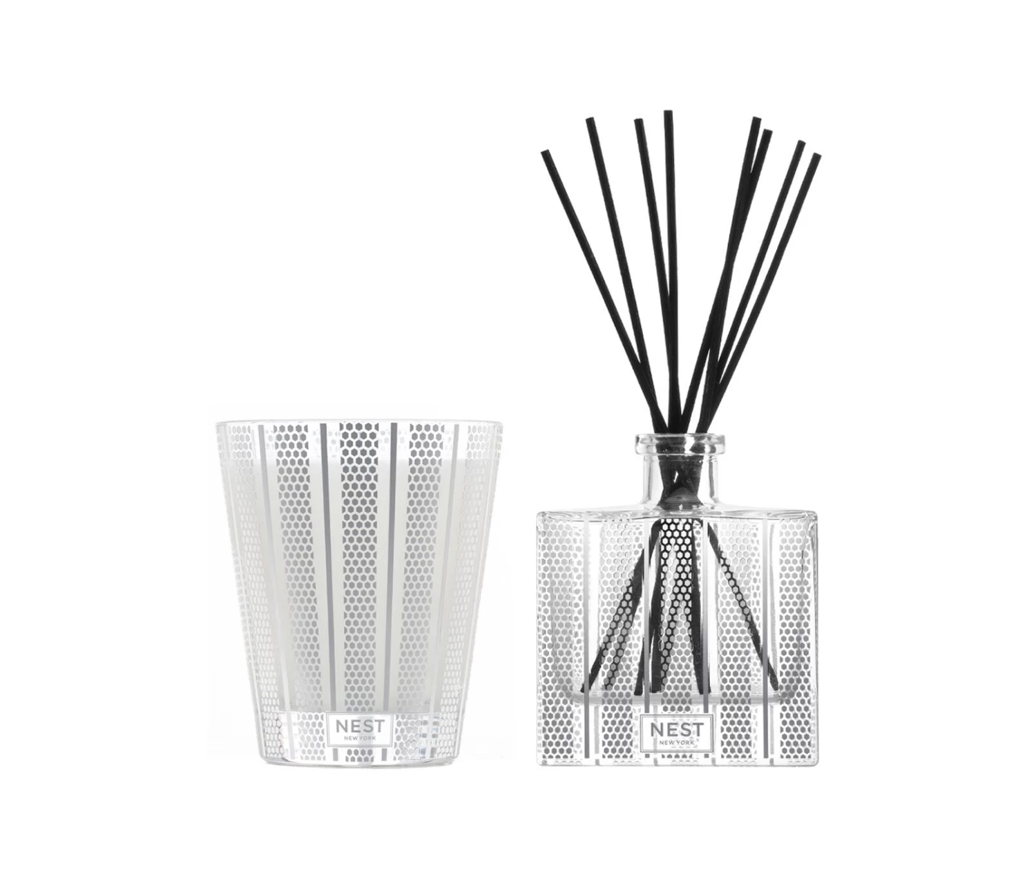 This Classic Candle and Reed Diffuser Duo offers an exotic take on ancient traditions with rich notes of crisp black amber, frankincense, and aromatic cedar.