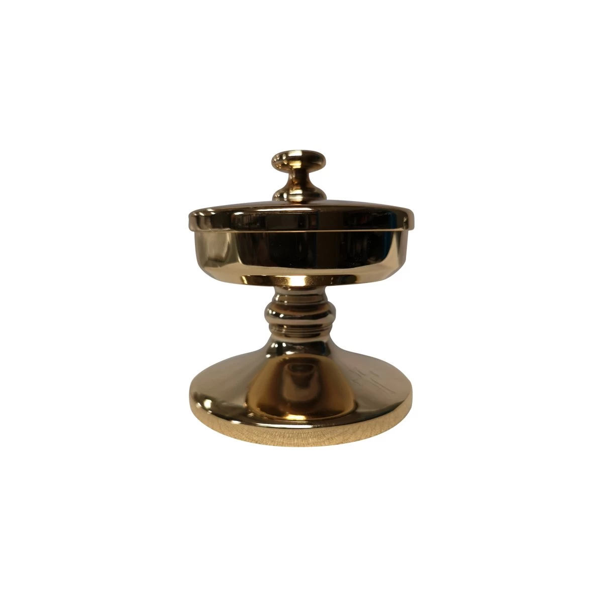 Looking for a unique and stylish way to store your Communion wafers? Look no further than our ciborium style pyx! Made from metal gold plate, this beautiful piece is perfect for any church or home.