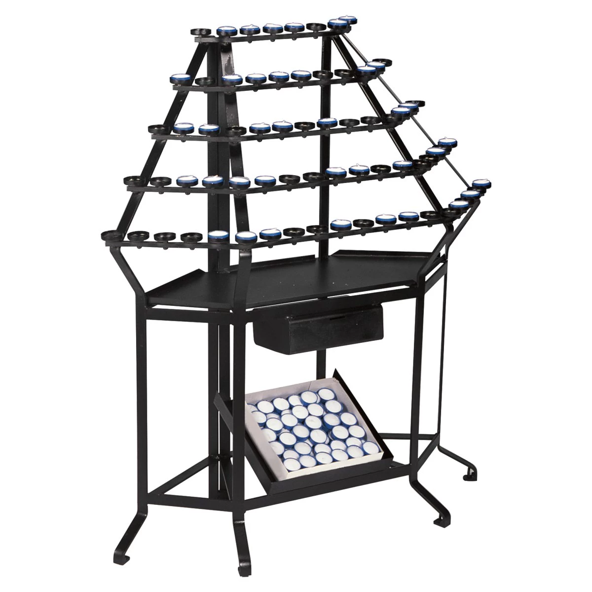 Large safety stand made in wrought iron, fitted with individual raised cups for votive lights.