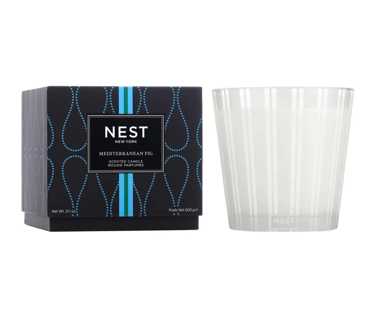 Capture the aromas of the lush Mediterranean landscape with this 3-Wick Candle featuring crushed fig leaves and blue cypress mingled with the essence of turquoise waters and dewy violet.