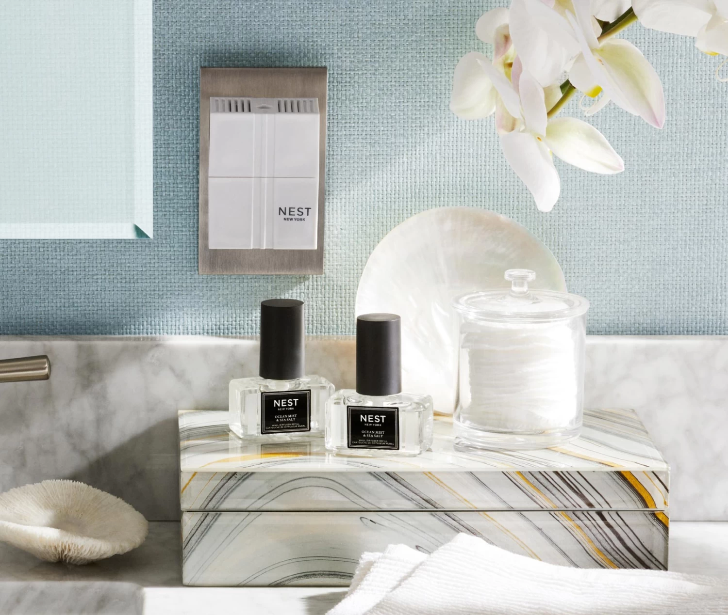 Scent your world with this exquisitely fragranced Wall Diffuser Refill Duo featuring the refreshing essence of a gentle ocean mist with hints of sea salt, white tea, and coconut for a seaside escape.