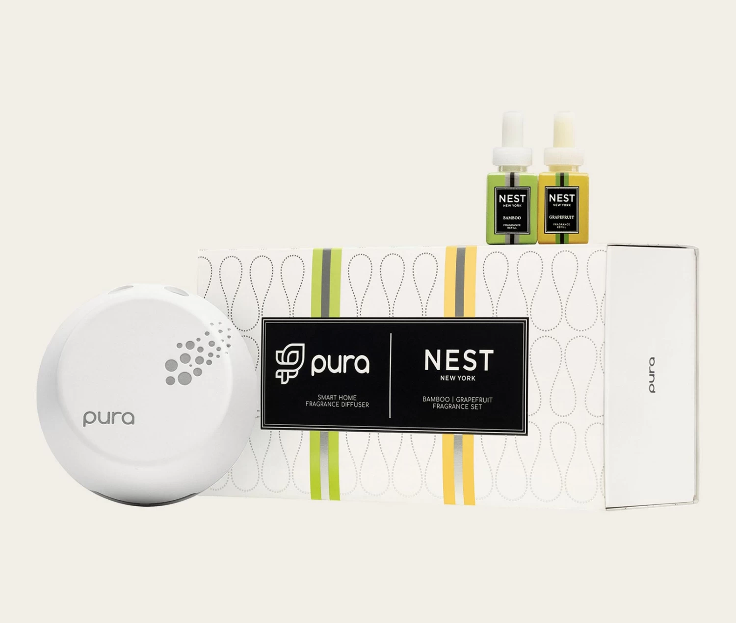 This Smart Home Fragrance Diffuser powered by Pura fills your home with bestselling fragrances Bamboo and Grapefruit.