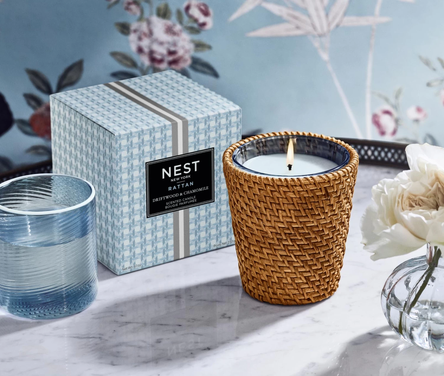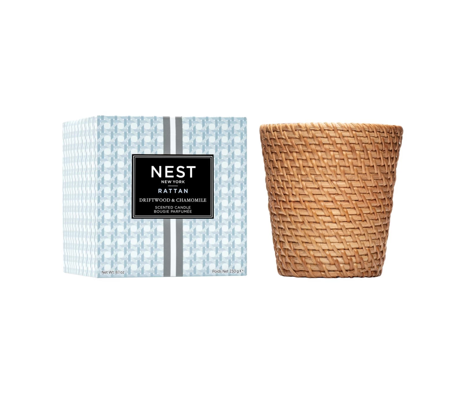 Prepare your mind and body for a peaceful sleep with this limited-edition Driftwood & Chamomile Classic Candle featuring a removable rattan sleeve.