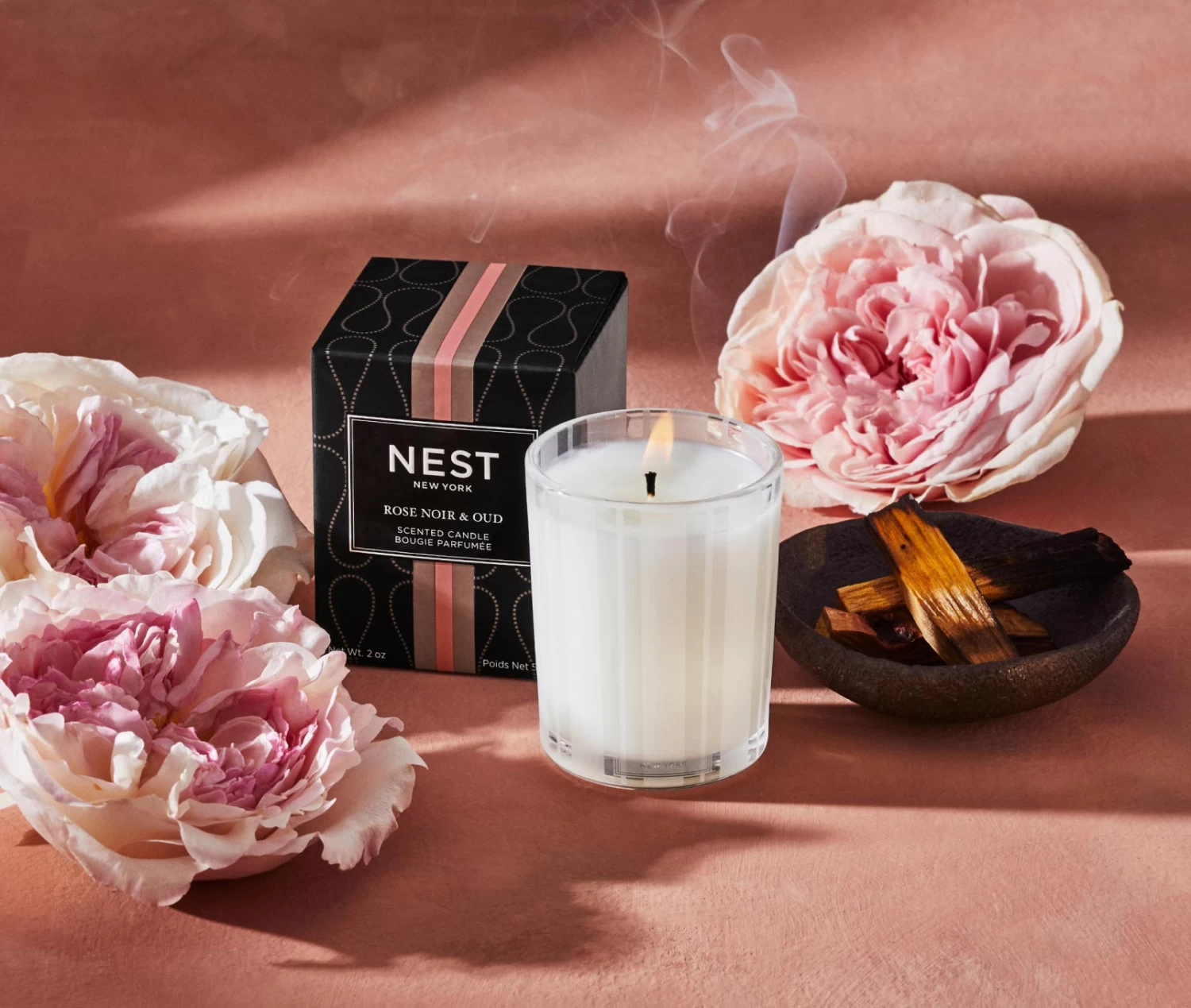Create a sultry aroma with this Votive Candle featuring captivating Rose de Mai blended with smoky oud, a hint of incense, black leather, and patchouli.