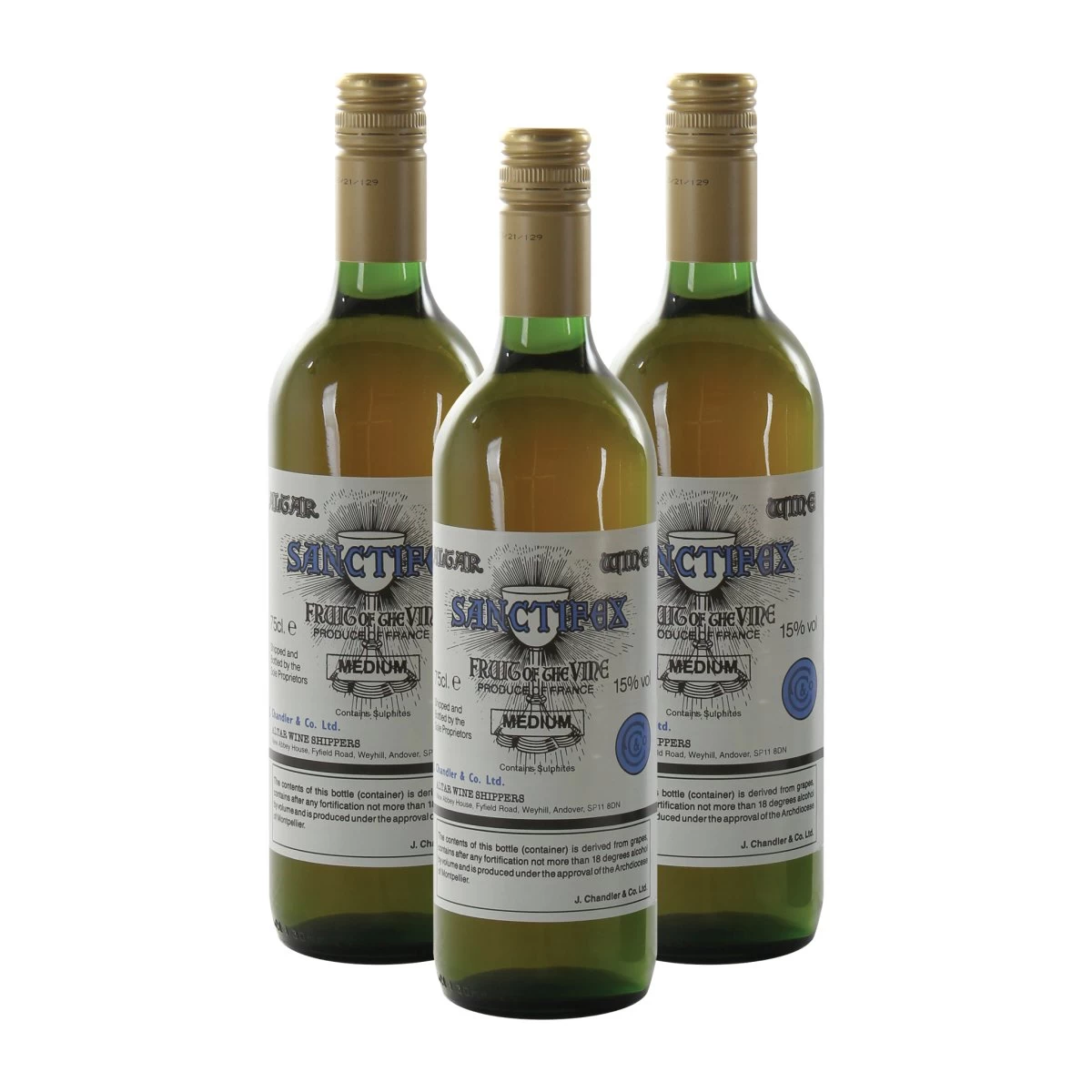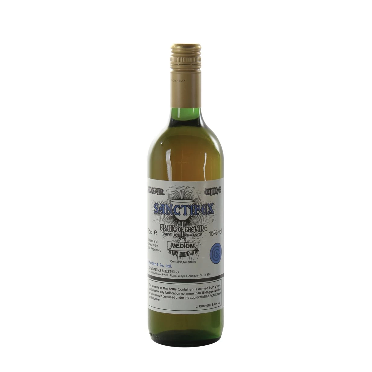Medium is a 15% volume Muscat medium sweet amber wine containing sulphate, suitable for vegans and produced in France.
