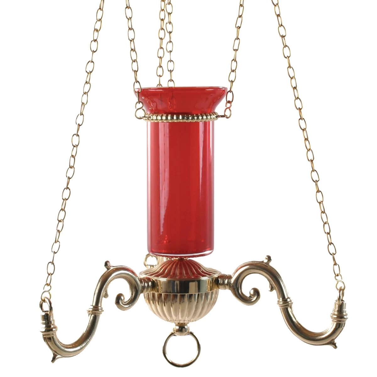 This beautiful, ornate hanging lamp is perfect to light up any room in your church or chapel. The polished brass finish and three extended scroll style arms give this piece a luxurious look, while the 16″ diameter size makes it perfect for smaller spaces. Add some elegance to your décor with this Three Arm